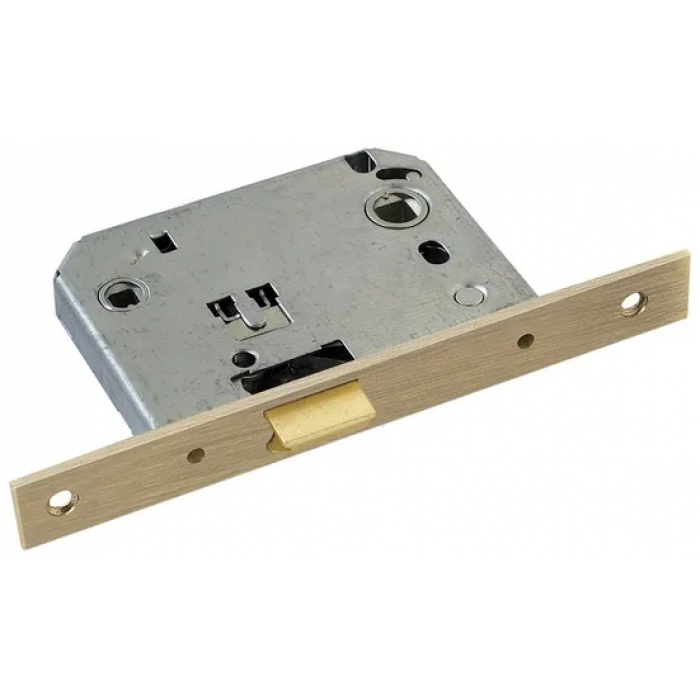 Сантехническая защелка с пластиковым язычком. Используется для бесшумного запирания дверей в сантехнические помещения. Межосевое расстояние 70мм.