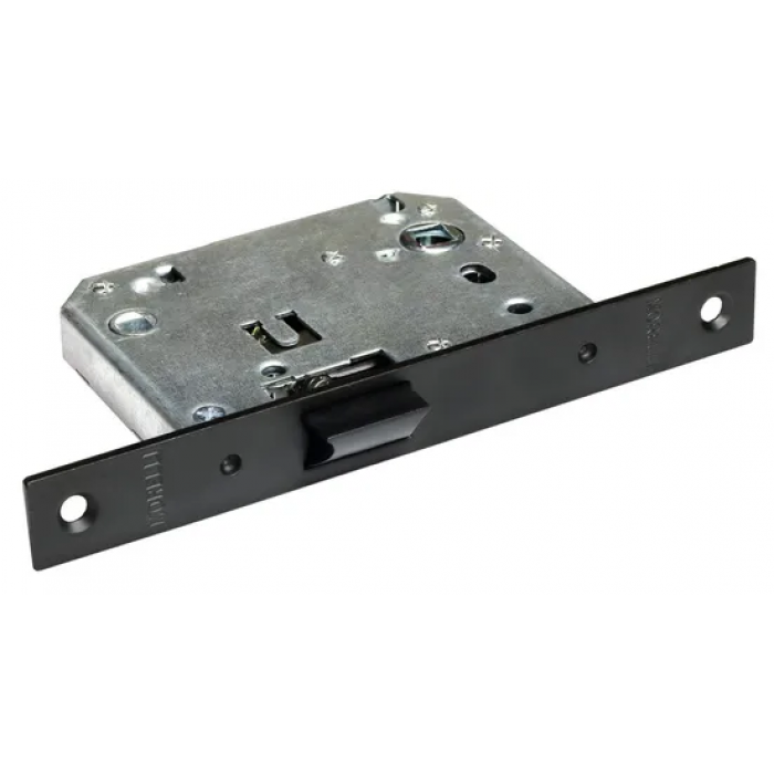 Сантехническая защелка с пластиковым язычком. Используется для бесшумного запирания дверей в сантехнические помещения. Межосевое расстояние 70мм.