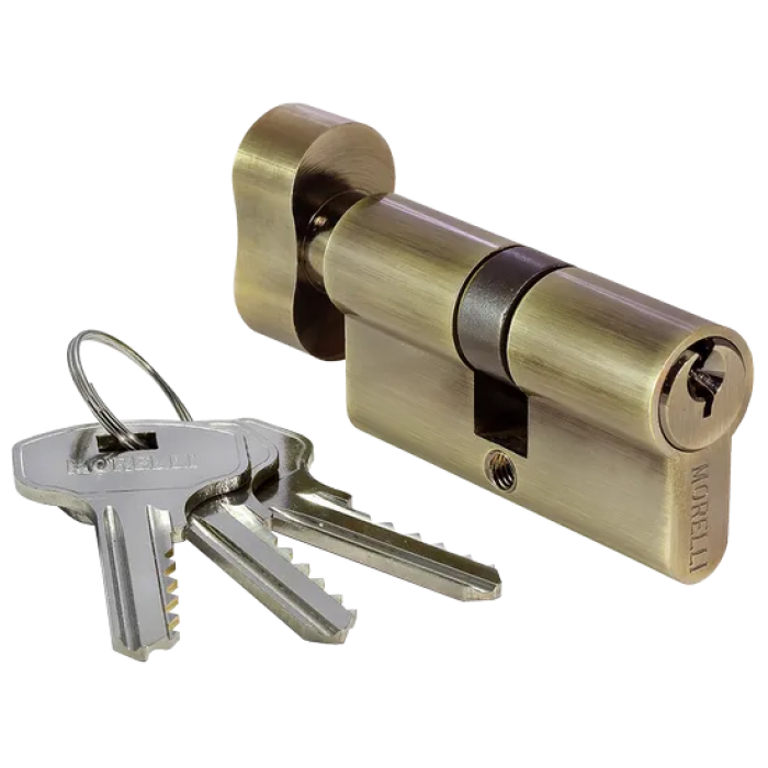 Ключевой цилиндр с заверткой для двери вставляется в замок или защелку для закрытия ключом с одной стороны помещения и поворота кноба с другой.