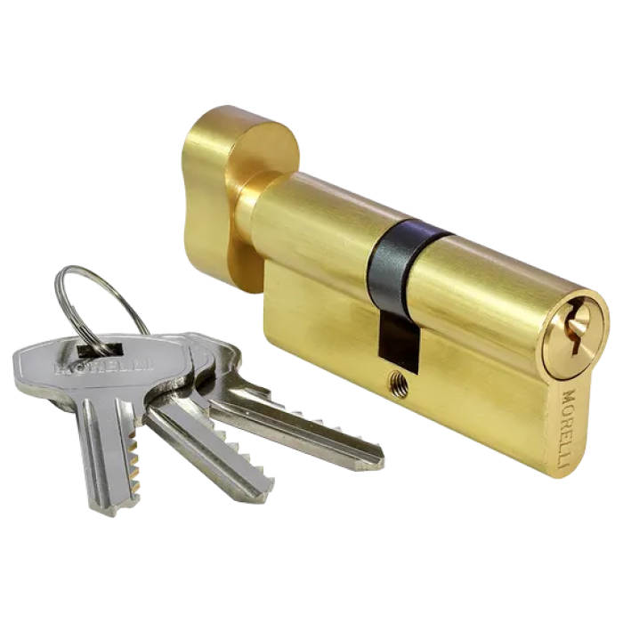 Ключевой цилиндр с заверткой для двери вставляется в замок или защелку для закрытия ключом с одной стороны помещения и поворота кноба с другой.