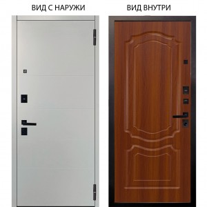 Входная дверь Берлога Нова внешняя панель Агат Вельвет белый горизонт внутренняя Элегант Софт милк