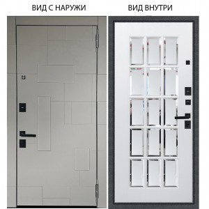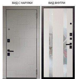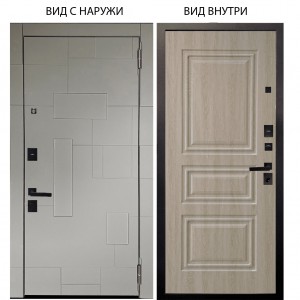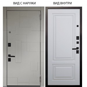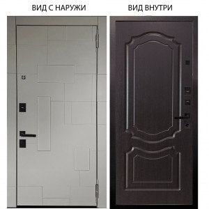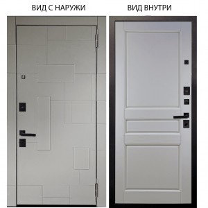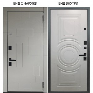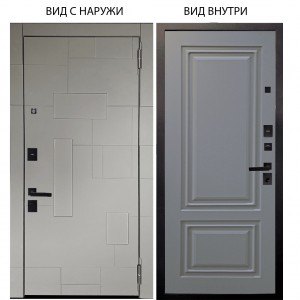 Закрытая, утеплённая, гнуто-сварная профильная коробка, Толщина короба — 110 мм, Толщина полотна — от 96 до 112 мм, Усиление в зоне ригелей, 4 противосъёмных ригеля, Эксцентрик, Проклейка изолоном, Опция «мягкое закрывание» (магнитный + 2 резиновых уплотнителя)