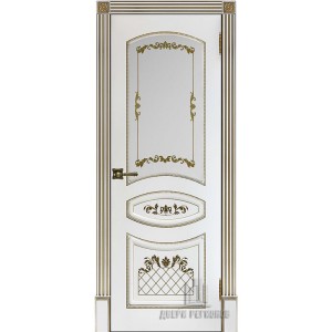 Дверь межкомнатная Алина Патина золото эмаль белая остекленная