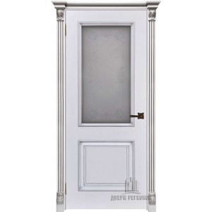 Дверь межкомнатная Багет 32 Патина серебро эмаль белая глухая