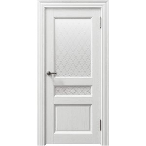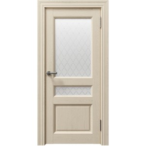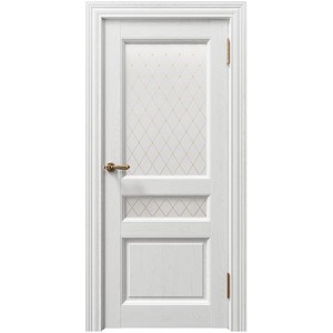 Межкомнатная дверь Сорренто 80014 состоит из массива сосны, дополненного плитами МДФ. Модель отличается изысканным, но в то же время лаконичным дизайном. Рельефные наличники выполнены в классическом стиле. Полотно изделия украшено тремя прямоугольными филенками, две из которых застеклены и дополнены геометрическими узорами. Используются матовые непрозрачные стекла, поэтому модель можно использовать в спальне, ванной комнате или санузле. В качестве покрытия основного полотна используется ПВХ-пленка от надежного немецкого производителя, поверхность можно мыть влажной тканью без применения агрессивных чистящих средств.
