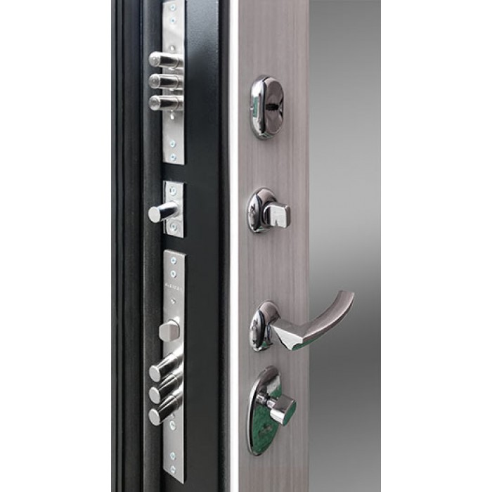Дверь входная Президент Люкс зеркало, цвет горький шоколад, панель - президент люкс зеркало цвет сандал белый + зеркало infinity