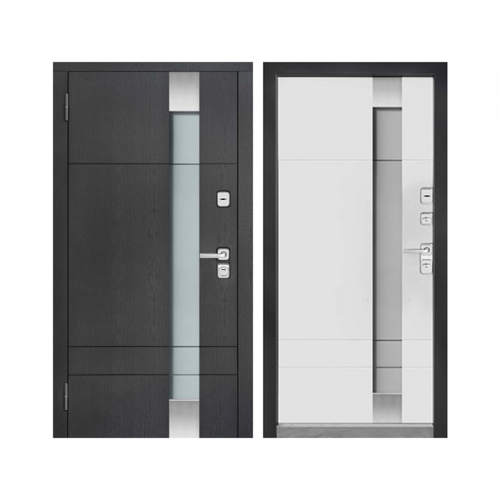 Дверь входная уличная Скандинавия, цвет графит патина, панель - скандинавия цвет белая эмаль