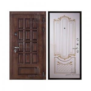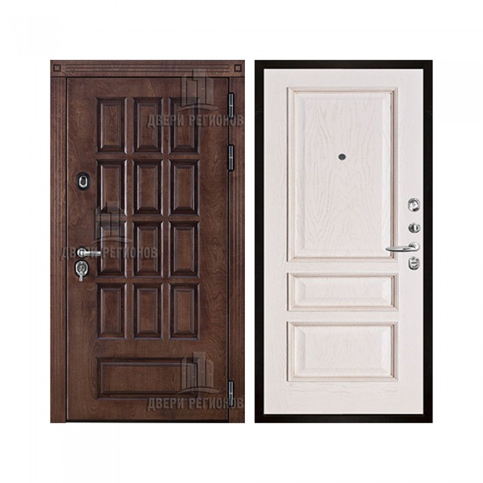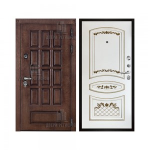 Дверь входная уличная Центурион, цвет лиственница мореная + черная патина, панель - вена цвет белая патина