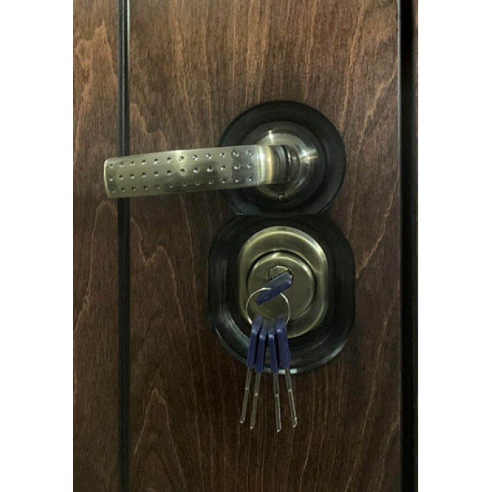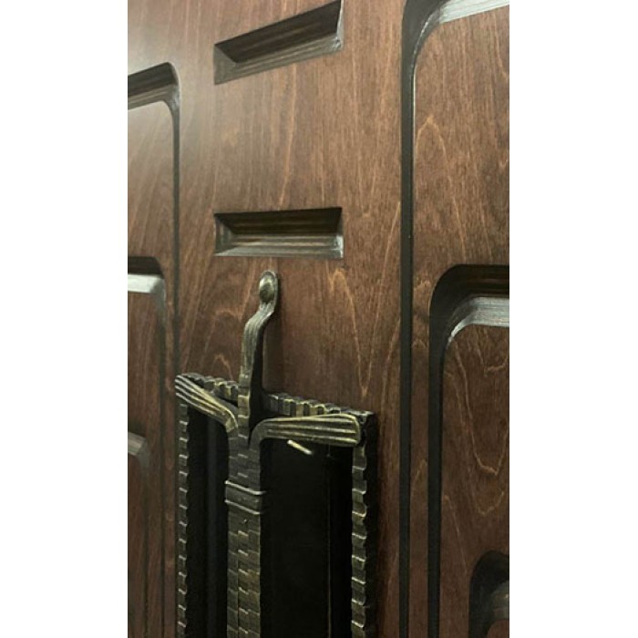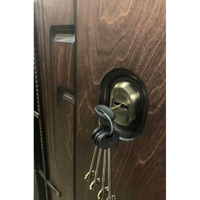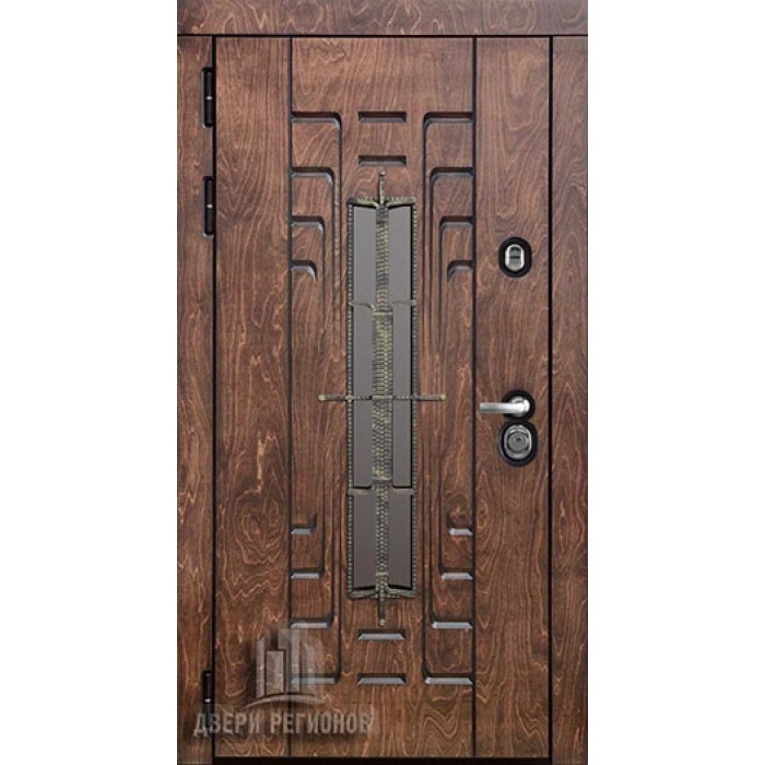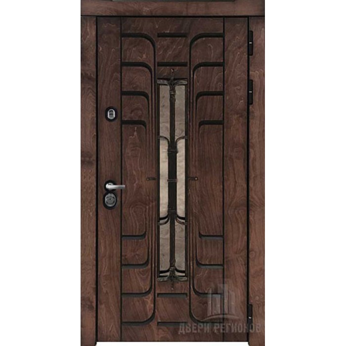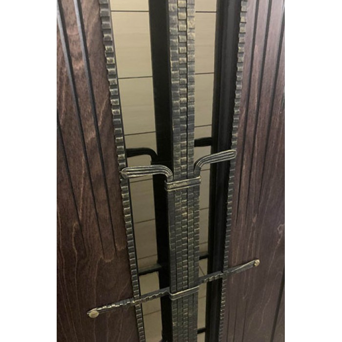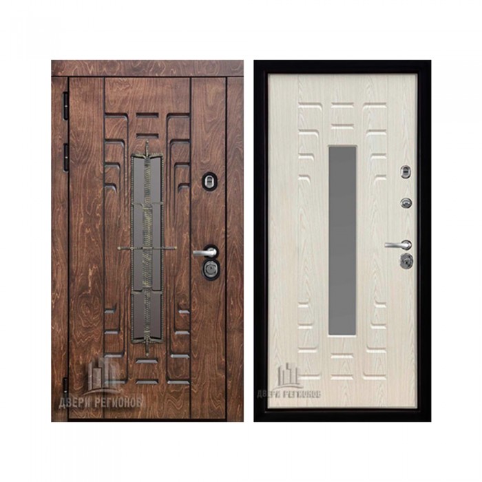 Дверь входная уличная Викинг, цвет лиственница мореная + черная патина, панель - викинг цвет слоновая кость + черная патина