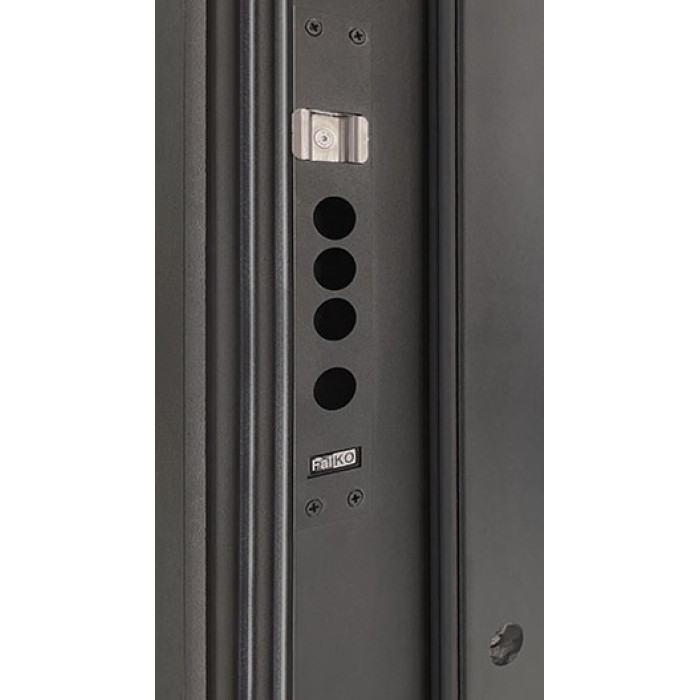 Дверь входная Флагман Доминион, цвет Бетон черный, панель - Багет 32 цвет Эмаль белая/Патина серебро