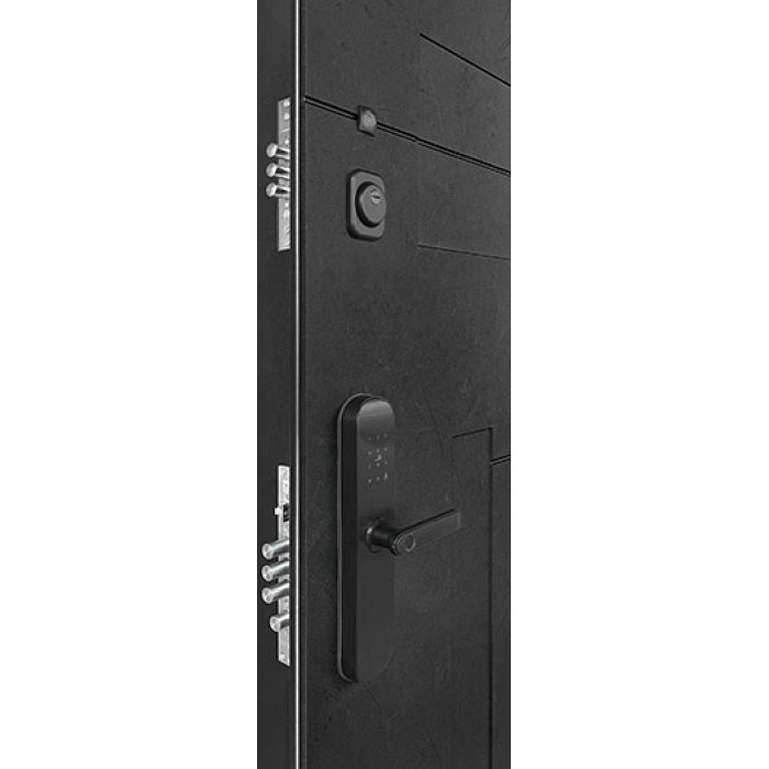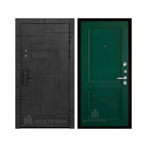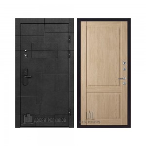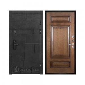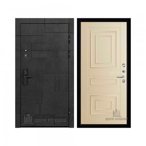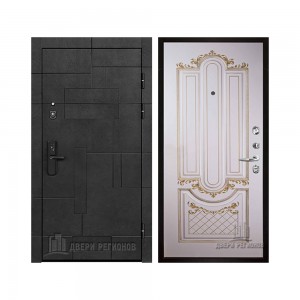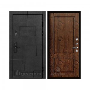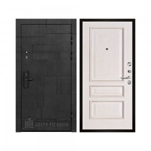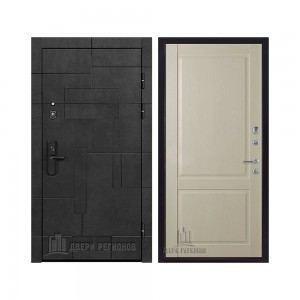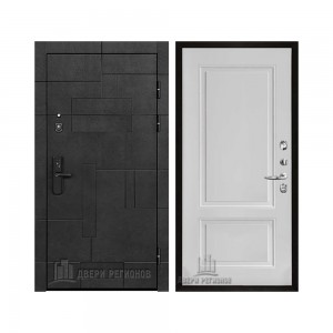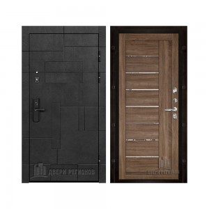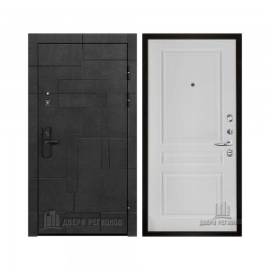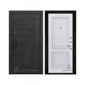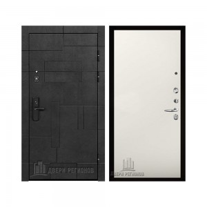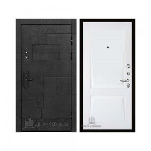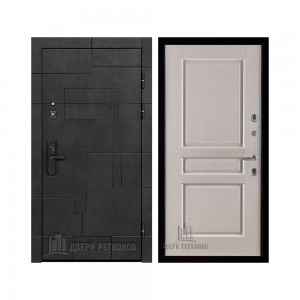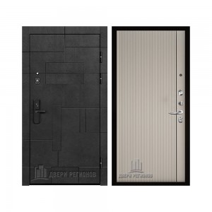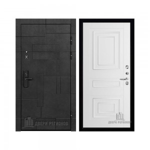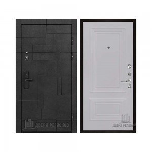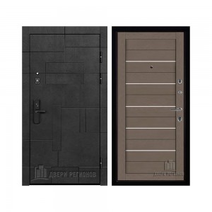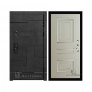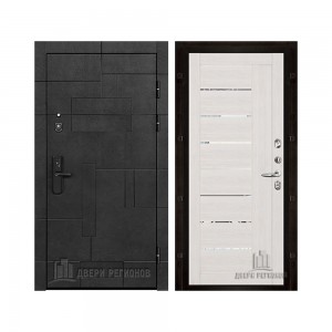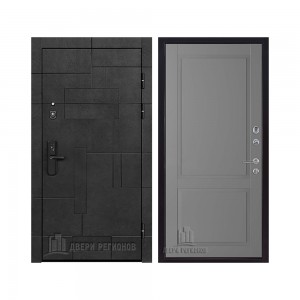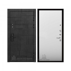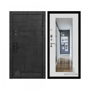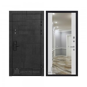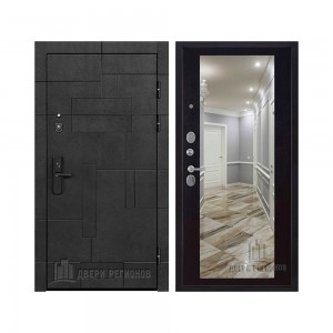 Дверь входная Флагман Доминион, цвет Бетон черный, панель - Зеркало infinity цвет Белый