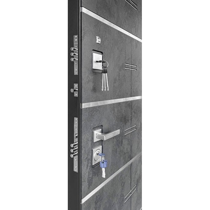 Дверь входная Флагман Z, цвет Бетон графит, панель - Фоборг цвет Античный орех