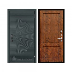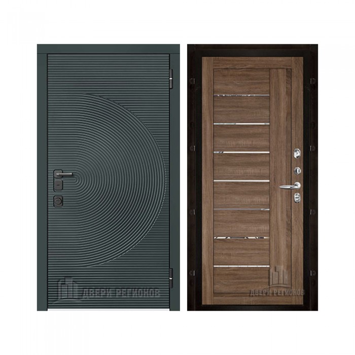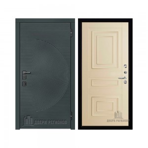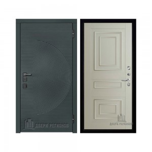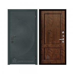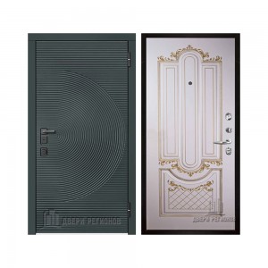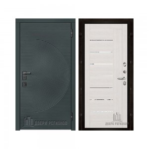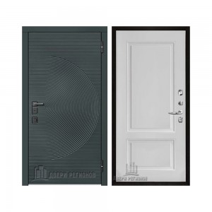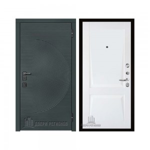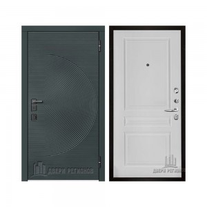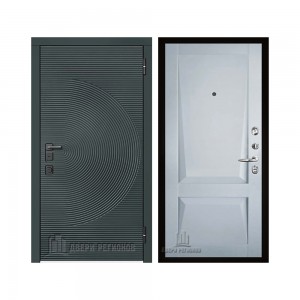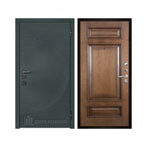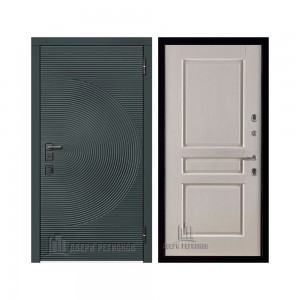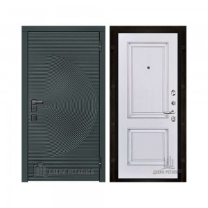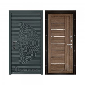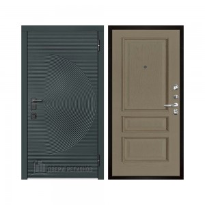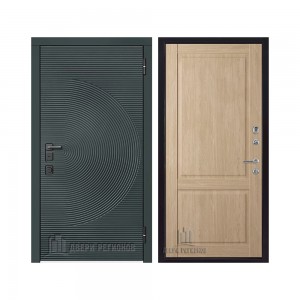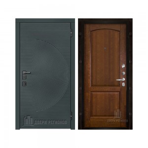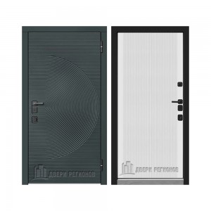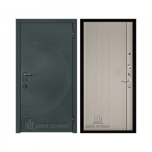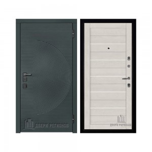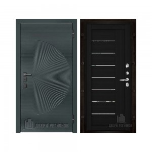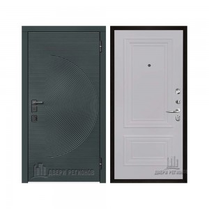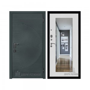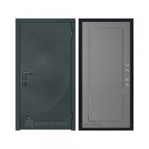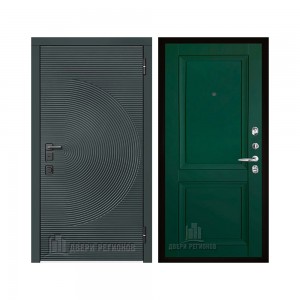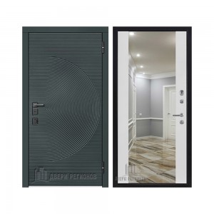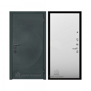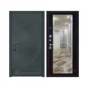 Дверь входная уличная Малахит Термо, цвет Зеленый темный, панель - light 2110 (зеркало) цвет Серый велюр