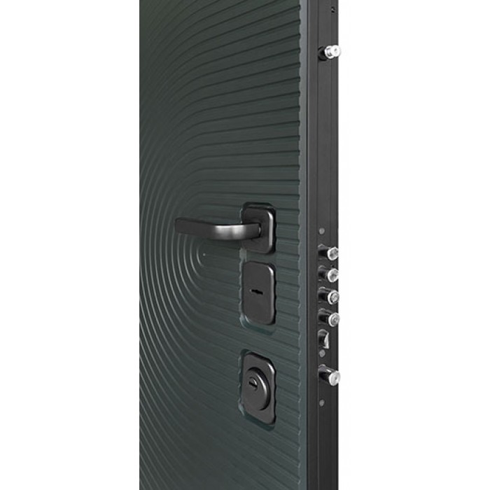 Дверь входная уличная Малахит Термо, цвет Зеленый темный, панель - perfecto цвет Светло-серый бархат