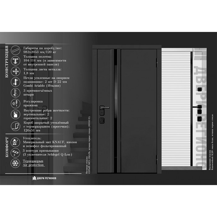 Дверь входная уличная Обсидиан Термо, цвет Серая эмаль, вставка черное стекло, панель - Лайн 1 цвет Галечный серый