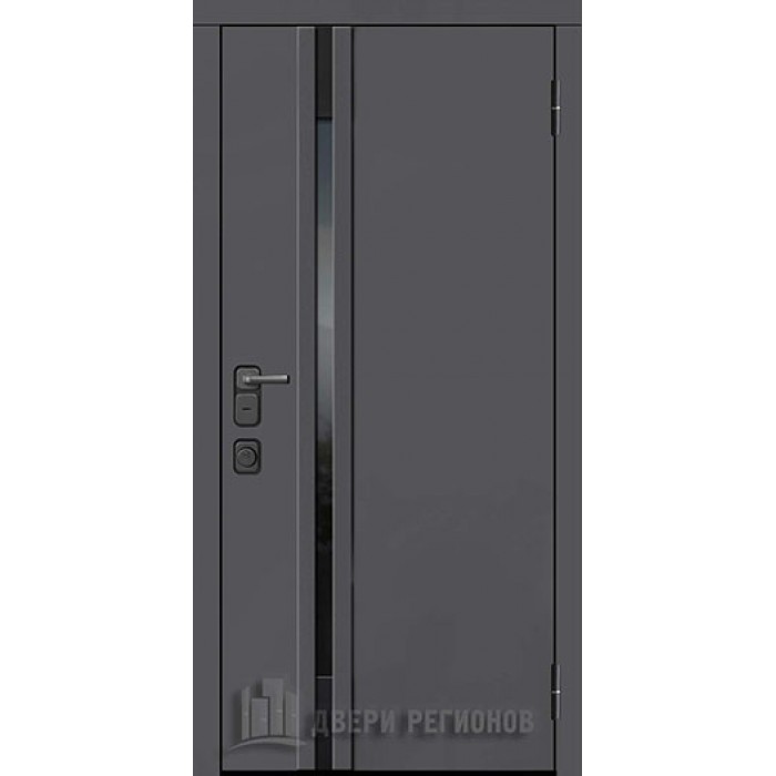 Дверь входная уличная Обсидиан Термо, цвет Серая эмаль, вставка черное стекло, панель - Зеркало maxi цвет Венге