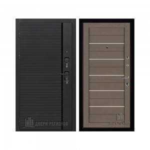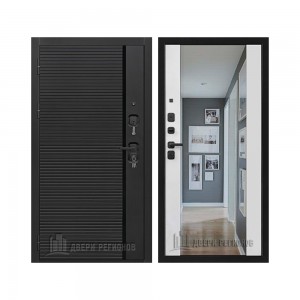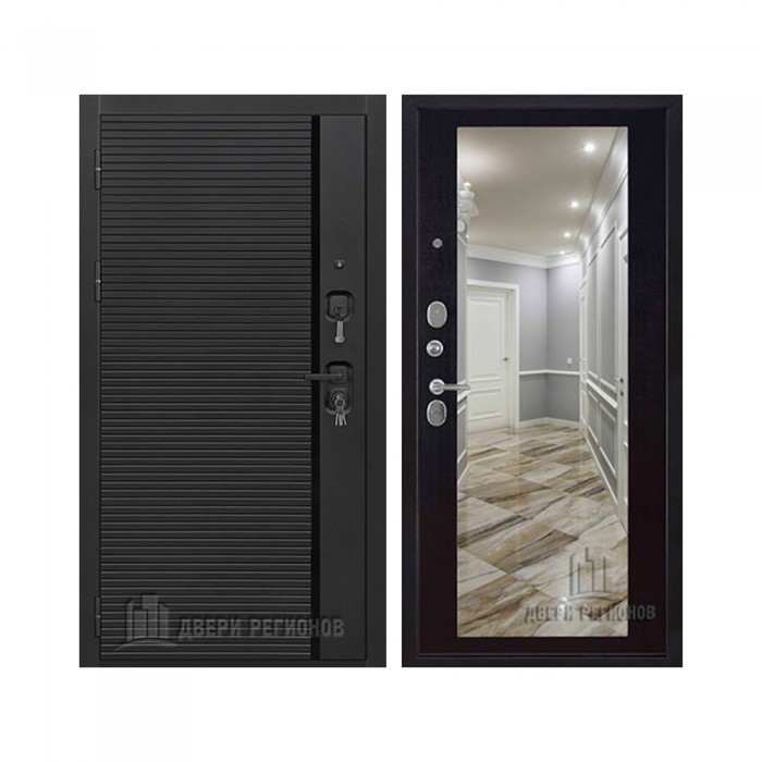 Дверь входная Президент Стайл зеркало, цвет Чёрная Мягкая Шагрень, панель - Зеркало maxi цвет Венге