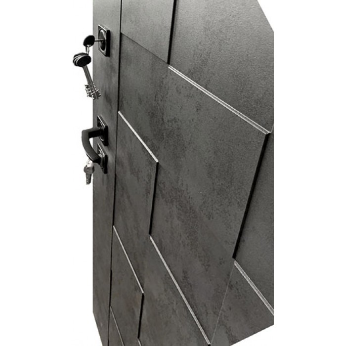 Дверь входная Quadro (Квадро), цвет Бетон графит темный 10 мм, панель - Багет 32 цвет Эмаль белая/Патина серебро