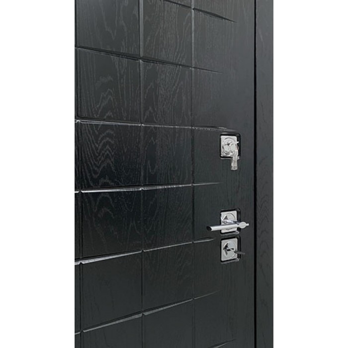 Дверь входная взломостойкая ALBERO BLACK, цвет Альберо Блэк Рисунок грань, панель - Зеркало maxi цвет Венге