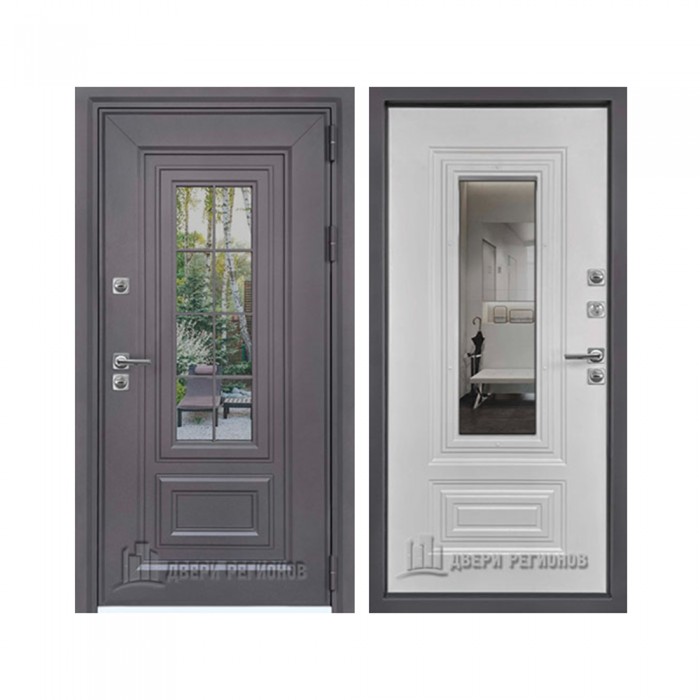 Дверь входная уличная Сибирь Термо, цвет Муар Меланж Махагон, панель - Сибирь цвет Белый матовый