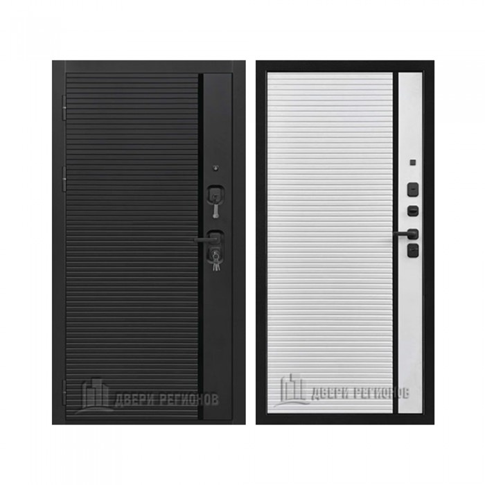 Дверь входная Стайл, цвет Чёрная Мягкая Шагрень, панель - Стайл цвет Белоснежная мягкая шагрень