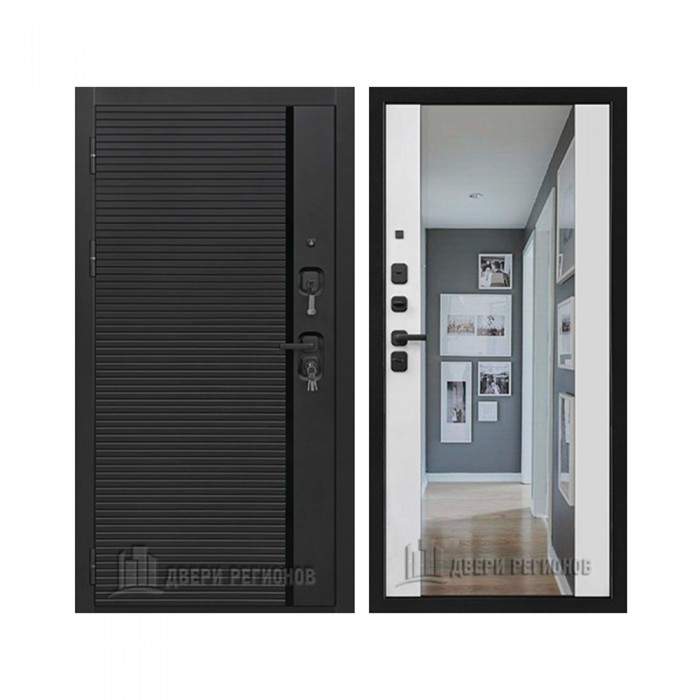 Дверь входная Стайл Z, цвет Чёрная Мягкая Шагрень, панель - Стайл z цвет Белоснежная мягкая шагрень с зеркалом