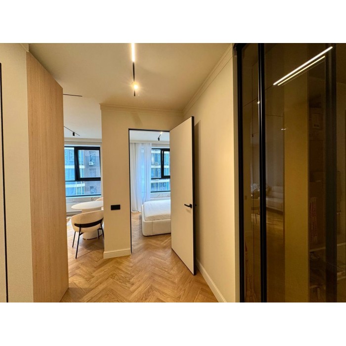 Invisible продаются под отделку. Изначально, материал имеет белый цвет, на который наносится краска или наклеиваются обои, выбранные при оформлении комнаты. Дверь полностью становится незаметной и прекрасно вписывается в интерьер. Помещение с невидимыми дверями выглядит просторно и свободно. Хорошим преимуществом становится возможность прятать вход во вспомогательные помещения (кладовка, санузел, гардероб..). Не всегда хочется акцентировать внимание на подобных помещениях.