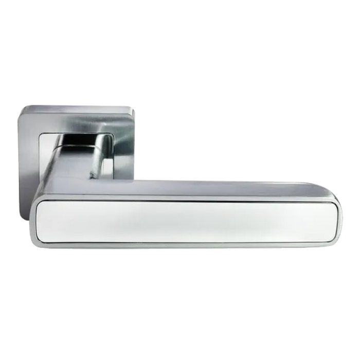 Ручка дверная FLEX MH-44 SC/CP-S55 раздельная на квадратной накладке, цвет матовый хром/хром, ЦАМ Light