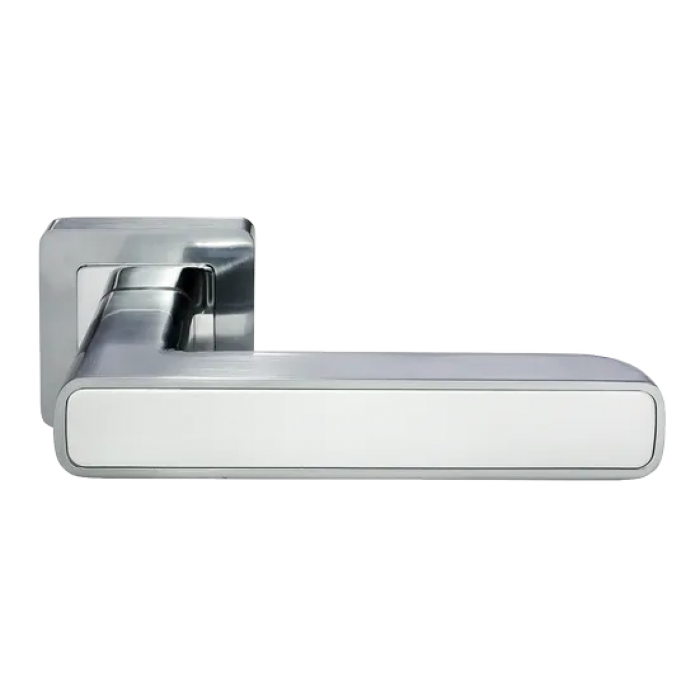 Ручка дверная FLEX MH-44 SC/W-S55 раздельная на квадратной розетке, цвет матовый хром/белый, ЦАМ Light