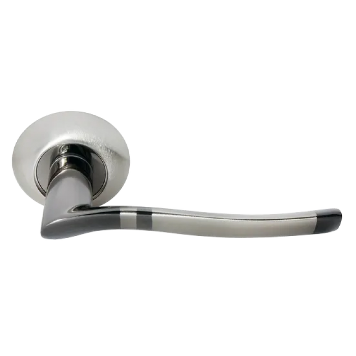 Ручка дверная ФОНТАН MH-04 SN/BN раздельная на круглой розетке, цвет бел.никель/черн. никель, ЦАМ