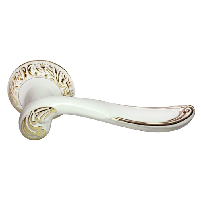 Ручка дверная GIUSEPPE MH-22-CLP W/PG раздельная на круглом основании, цвет белая эмаль/золото, ЦАМ