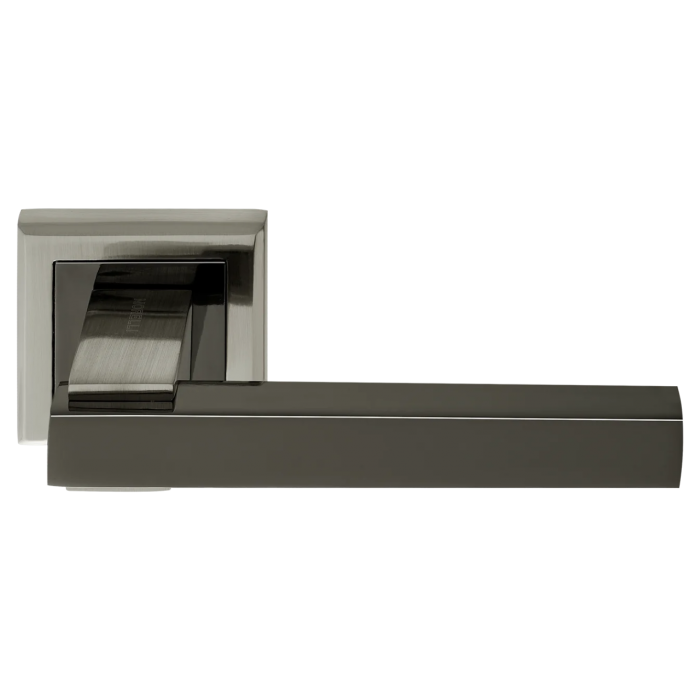 Ручка дверная PIQUADRO MH-37 SN/BN-S раздельная на квадратной накладке, цвет бел. никель/черн. никель, ЦАМ Light