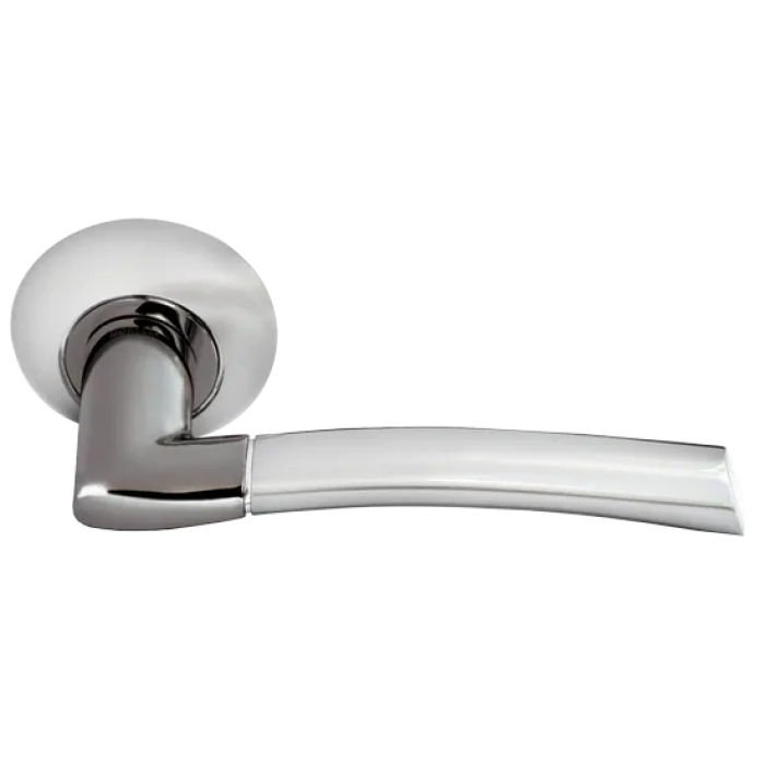 Ручка дверная ПИЗА MH-06 SN/BN раздельная на круглой розетке, цвет бел. никель/черн. никель,ЦАМ Light