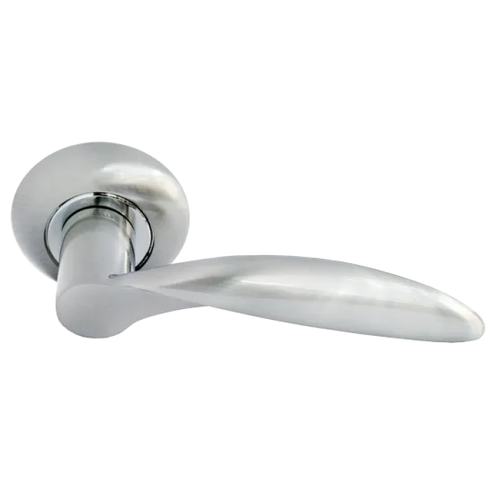 Ручка дверная ПОРТАЛ MH-07 SN раздельная на круглой розетке, цвет белый никель, ЦАМ