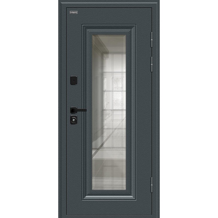 Стальной цельнопрессованный лист «Monolith» с декоративным тиснением, обеспечивает повышенную прочность и защиту от коррозии (в отличии от дверей с «металлофиленками»).