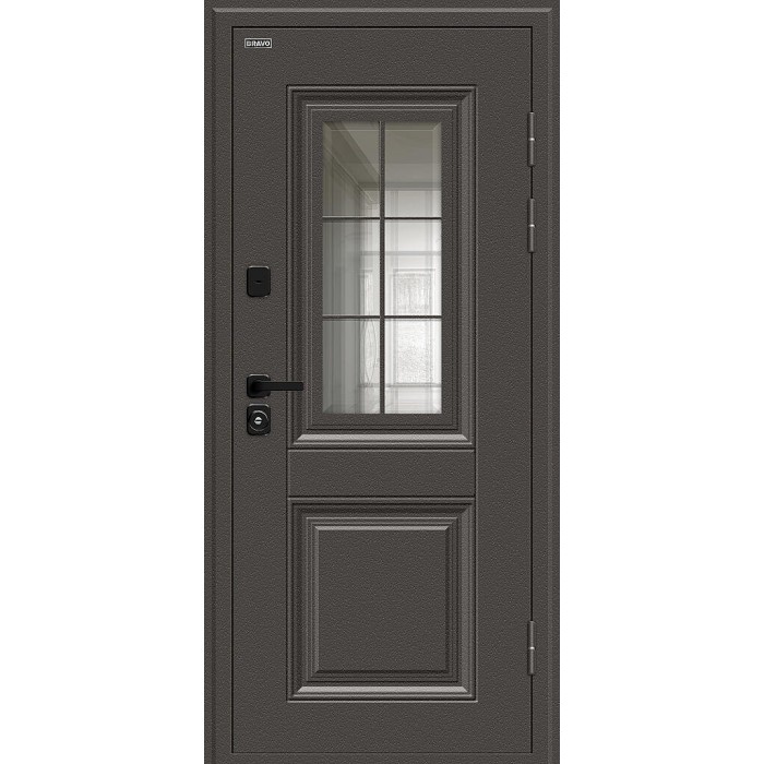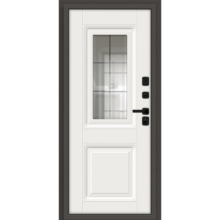 Стальной дверной блок энергосберегающей конструкции с двойным терморазрывом (термомостом) из натуральной пробки, четырехконтурным уплотнением и уникальным цилиндром с термоштоком. Поставляется с правым и левым открыванием наружу.