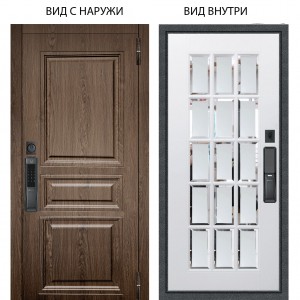Входная дверь ARGUS SMART внешняя панель Магистр дуб кантри внутренняя Мэрелин Софт милк зеркало с фацетом и пескоструем