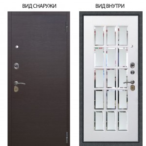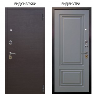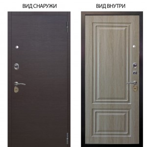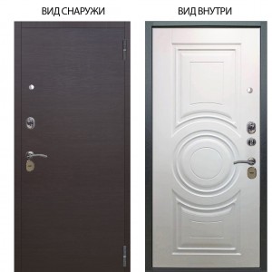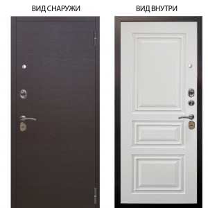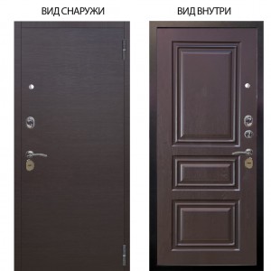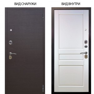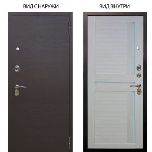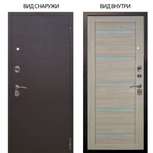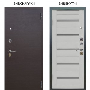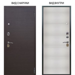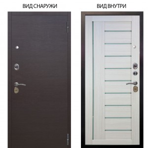 Стальная дверь БЕРЛОГА XS внешняя панель Элегант Венге горизонт внутренняя Тревор Софт милк
