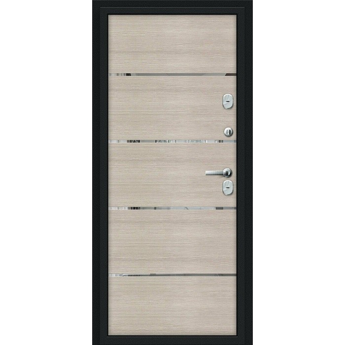 Терморазрыв (термомост) из натуральной пробки по периметру полотна. Внутри полотна установлена конструкционная теплоизоляционная панель SIP (Structural Insulated Panel), которая не только обеспечивает необходимую тепло- и шумоизоляцию, но и придает дополнительную жесткость и прочность дверному блоку.