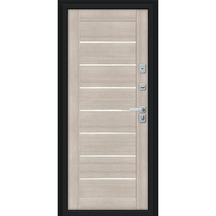 Терморазрыв (термомост) из натуральной пробки по периметру полотна. Внутри полотна установлена конструкционная теплоизоляционная панель SIP (Structural Insulated Panel), которая не только обеспечивает необходимую тепло- и шумоизоляцию, но и придает дополнительную жесткость и прочность дверному блоку.
