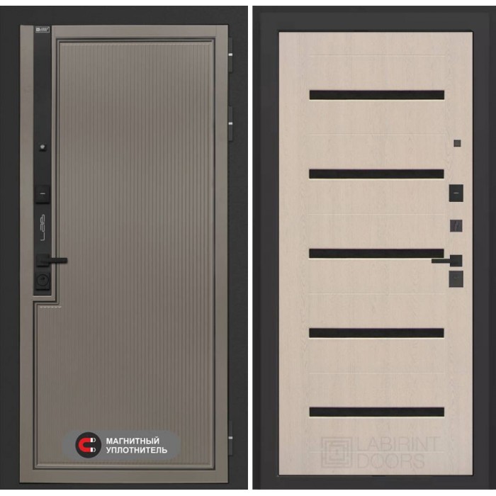 Входная дверь Лабиринт Лаб 1 Про 01 - Беленый дуб, стекло черное
