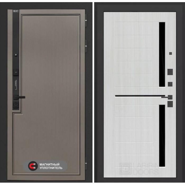 Входная дверь Лабиринт Лаб 1 Про 02 - Сандал белый, стекло черное