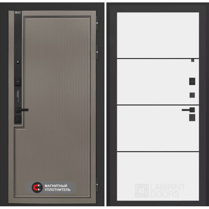 Входная дверь Лабиринт Лаб 1 Про 25 - Белый софт, черный молдинг