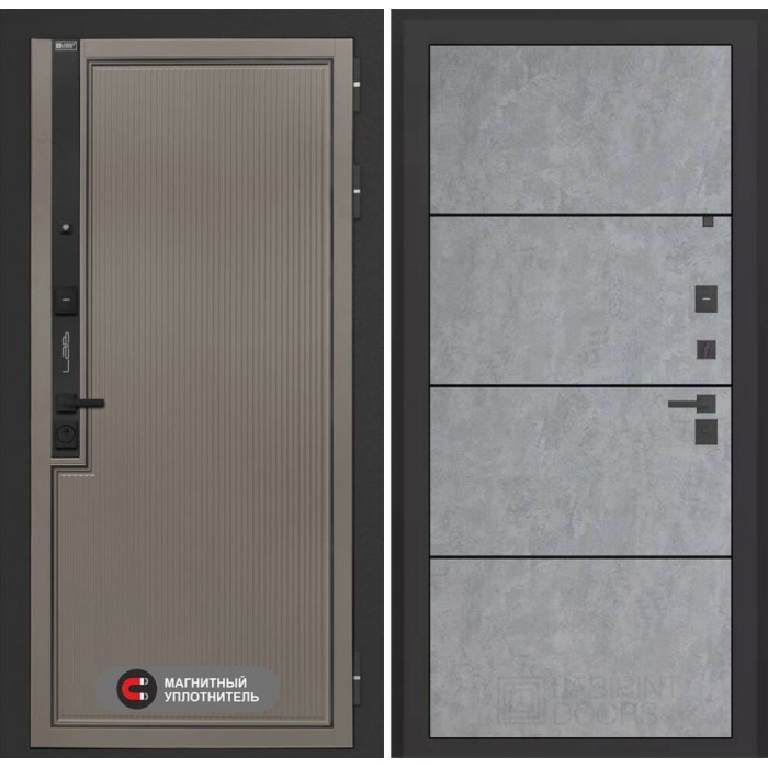 Входная дверь Лабиринт Лаб 1 Про 25 - Бетон светлый, черный молдинг
