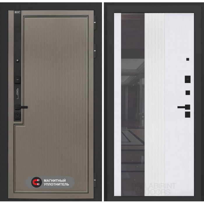 Входная дверь Лабиринт Лаб 1 Про с Зеркалом 32 тонированным - Белый рельеф софт