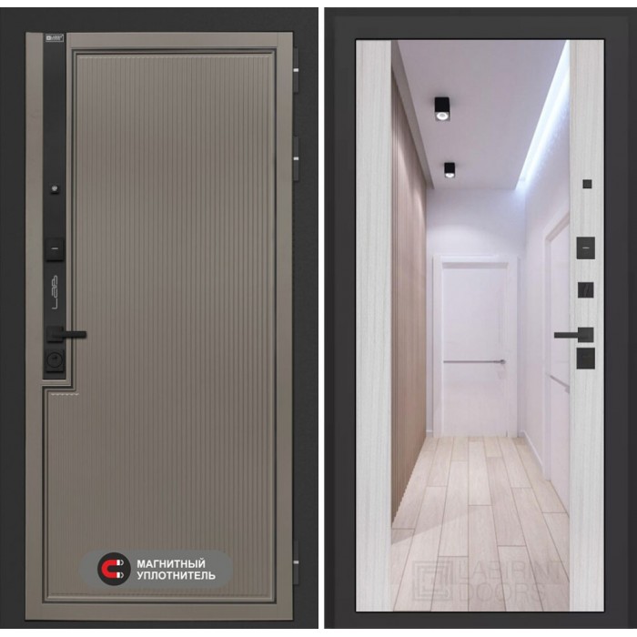 Входная дверь Лабиринт Лаб 1 Про с зеркалом Максимум - Сандал белый