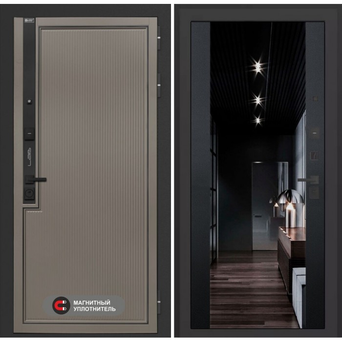 Входная дверь Лабиринт Лаб 1 Про с зеркалом (тонированное) Максимум - Черный кварц