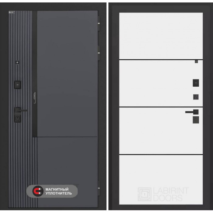 Входная дверь Лабиринт Лаб 2 Про 25 - Белый софт, черный молдинг