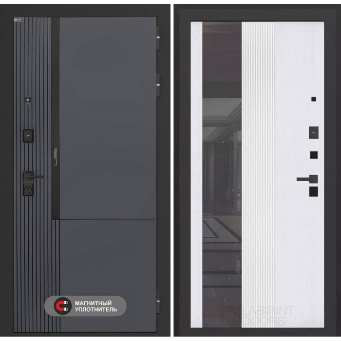 Входная дверь Лабиринт Лаб 2 Про с Зеркалом 32 тонированным - Белый рельеф софт