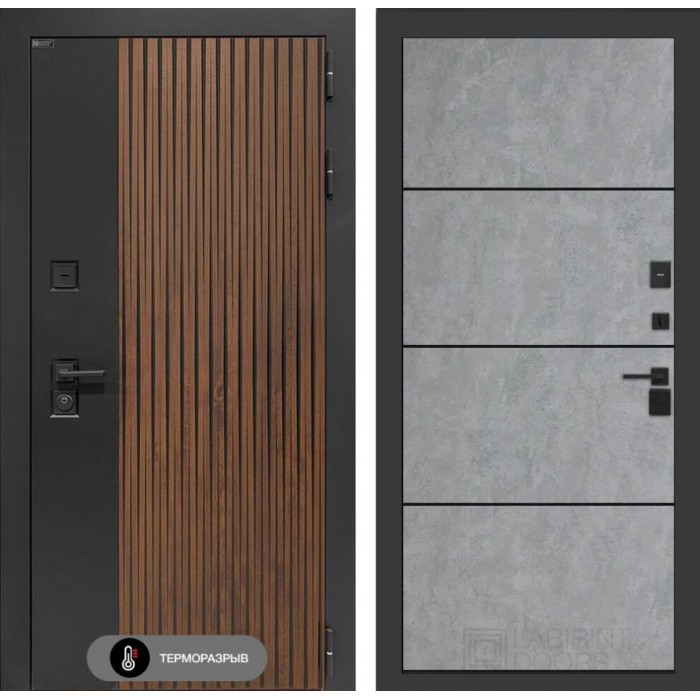 Входная дверь Лабиринт Айслаб 25 - Бетон светлый, черный молдинг
